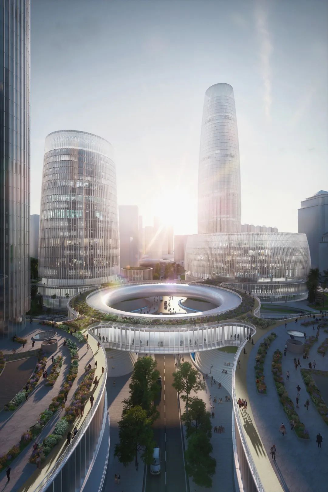 建筑设计致力于在园区内所有业态之间创建一个连续连接,注重展现打造一个具有凝聚力的社区和协作工作场所的理念。通过在规划中引入相关连的环形结构而实现该定位。