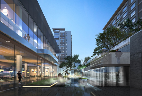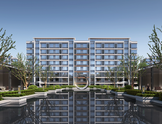 本项目小区规划打破兵营式布局,规划采用十字布局,竖向北高南低,高低错落,形成丰富的天际线,项目绿地率30%,容积率2.1,人车分流,精装交付,项目配有社区卫生服务站、托老所、老年活动站、社区管理服务用房等配套用房,为居民提供便民服务。项目由7-11层洋房和15层小高层组成,共1007户,户型均为南北通透户型,属于中大社区,据北京市住建委数据,目前网签已经达814套,已进入尾盘销售阶段。仪式性入口景观+中央景观会客厅+共享会客厅,形成了三进礼序轴线空间,项目打造承载全龄生活的自然景观花园,设置有宅前休憩花园,运动健身跑道等小品,提升小区居民生活品质。图3:会所庭院