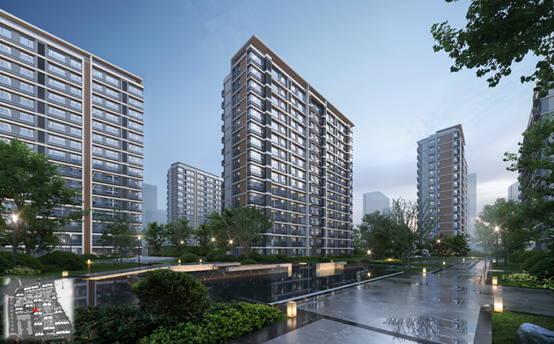 景观结构及成本分配结合产品价值分布原则,因地制宜,以人为本,打造宜居绿色生态新标杆。项目以现代简约风格为主,紧跟时代审美趋势,去繁除杂,精雕细琢,采用纯粹均质化建筑构架,突出公建化简洁立面形式呈现简约大气的气质,让建筑美学、功能、结构等因素有机统一精雕细琢融于设计,以匠人之心思考建筑,用精工品质呈现经典。图4:住宅效果