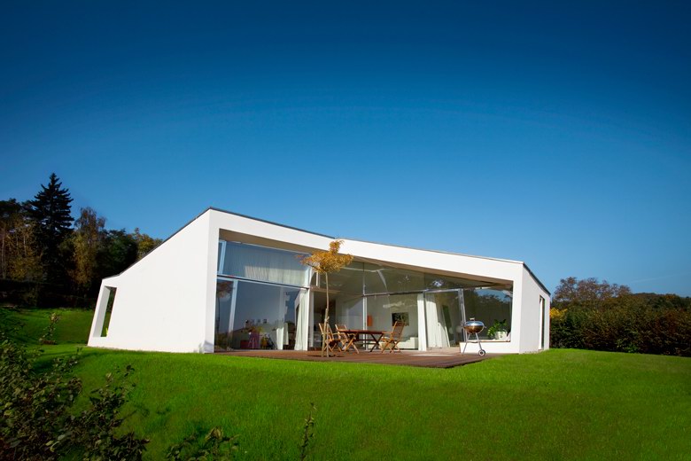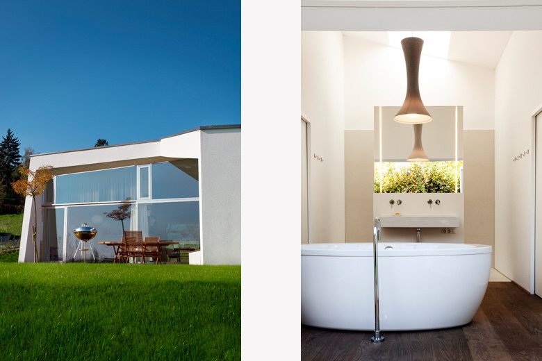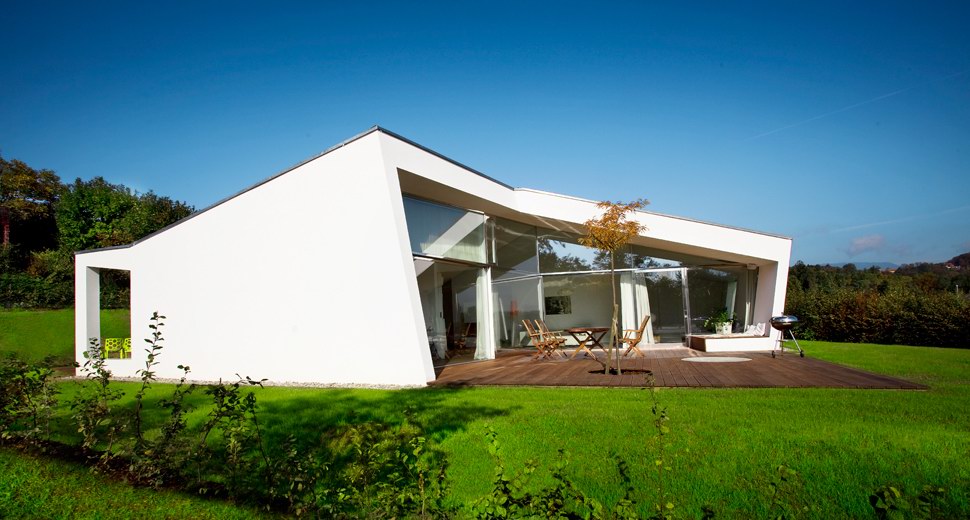 这座位于奥地利Graz的美丽而小巧的别墅(Villa 3S)由奥地利建筑工作室LOVE Architecture设计完成。Villa 3S房子虽小却有着诸多设计上的可爱和精彩之处。它有着不规则却积极简练的几何外形,这种现代主义风格的建筑在周围环境中显得格外突出。从地面到天花板的大面积玻璃窗让室内洒满了阳光,同时滑动的玻璃门打开后将室外怡人的景观无限地延伸到室内。为了使紧凑的首层空间增加生活起居空间,建筑师设计了一个巨大的室外延展平台,可以在这里进行户外休息放松,用餐和娱乐。