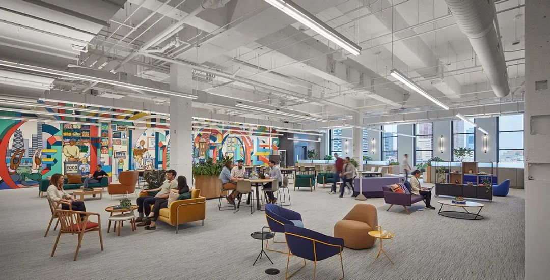 这处新办公室引入了各种工作空间和休闲空间,以确保尽可能为员工提供最佳的工作体验。比如说 “Grand Town Hall”大型聚会场所,这是一个光线充足、并俯瞰芝加哥河的多元复合空间。