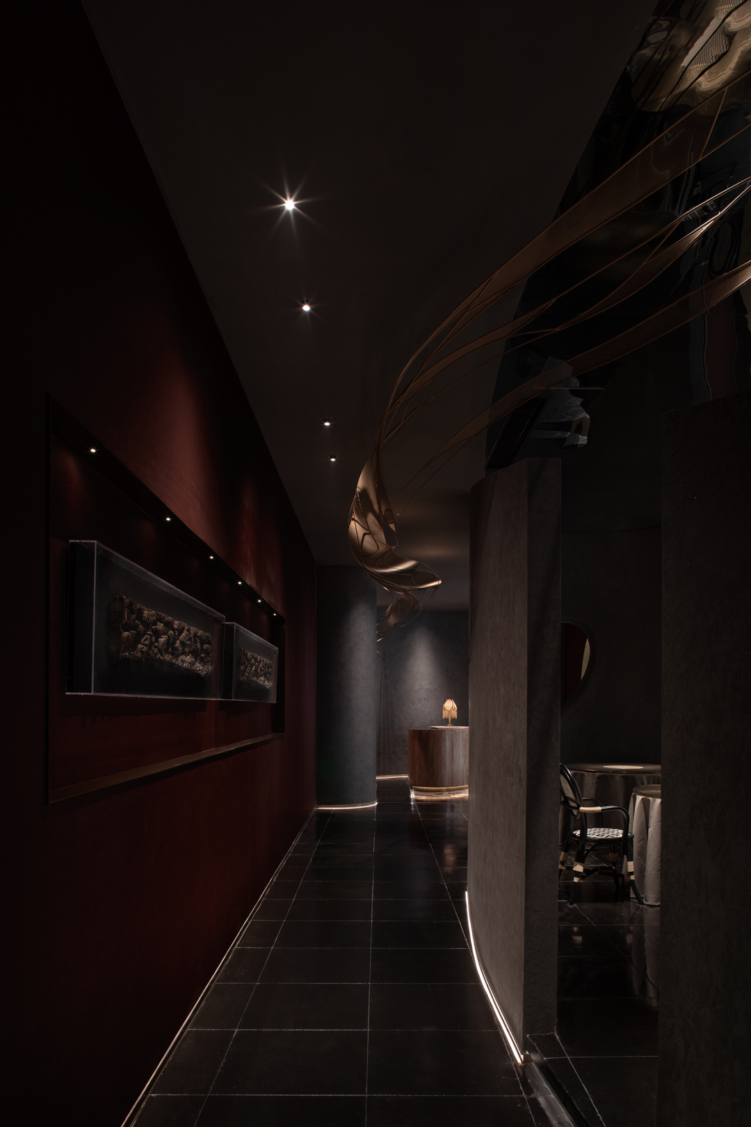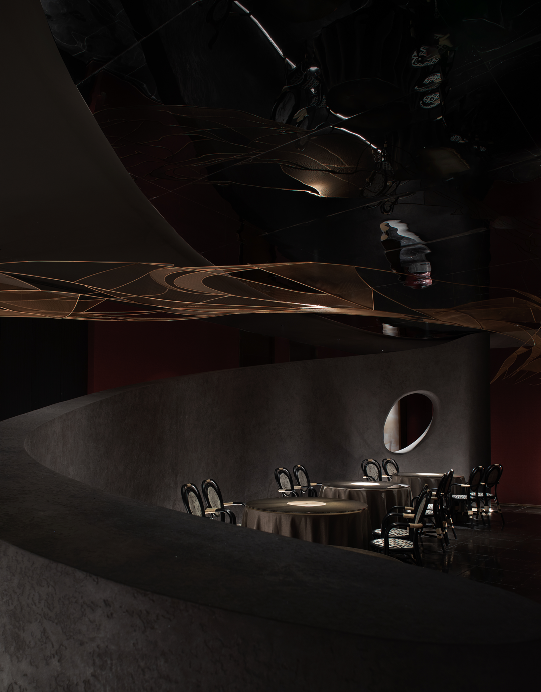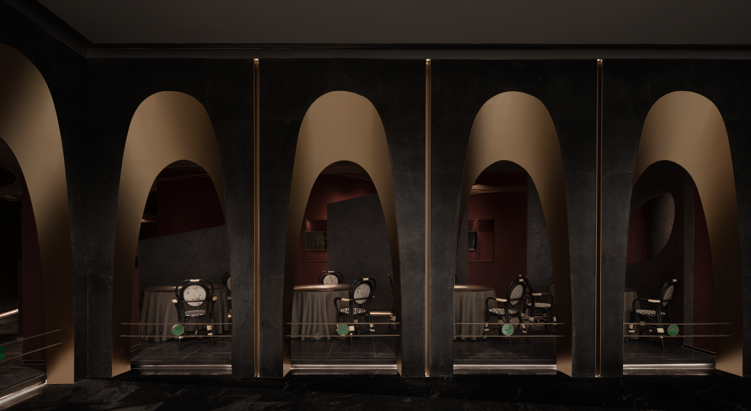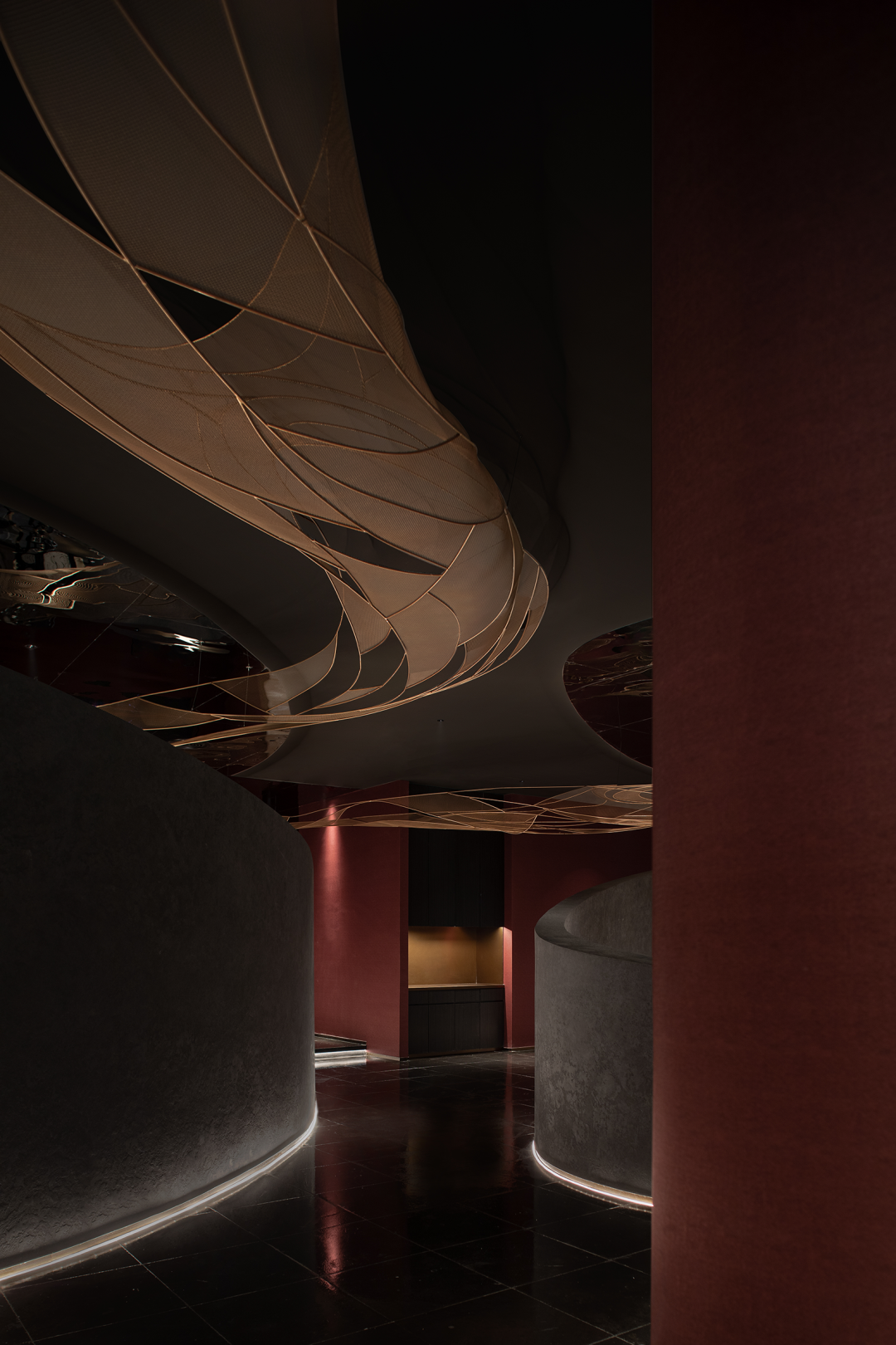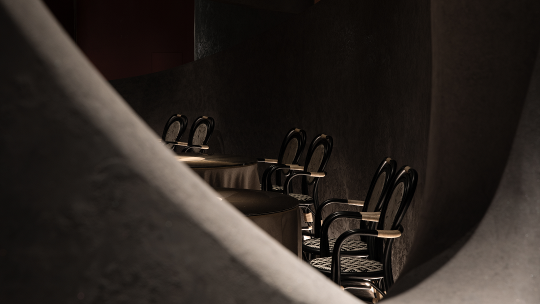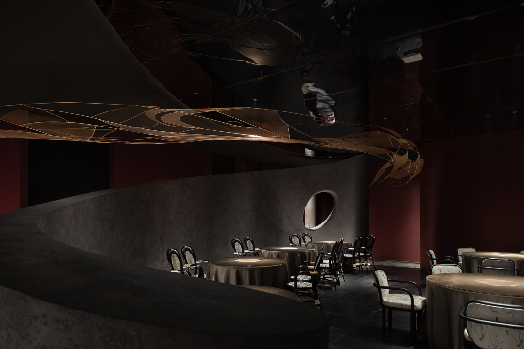 Using winding paths to divide the space, light devices and colors collide and blend into the space, and textured surfaces with different glossiness complete multiple visual levels. Forming a combination of surfaces and lines, the overall shape is organic and dynamic.