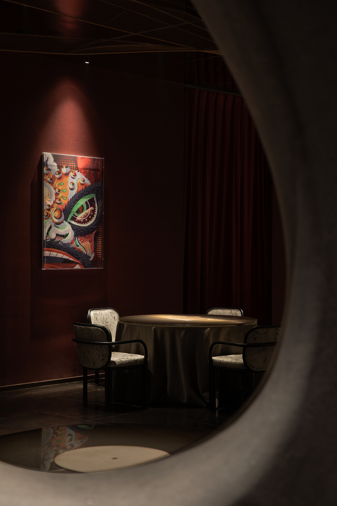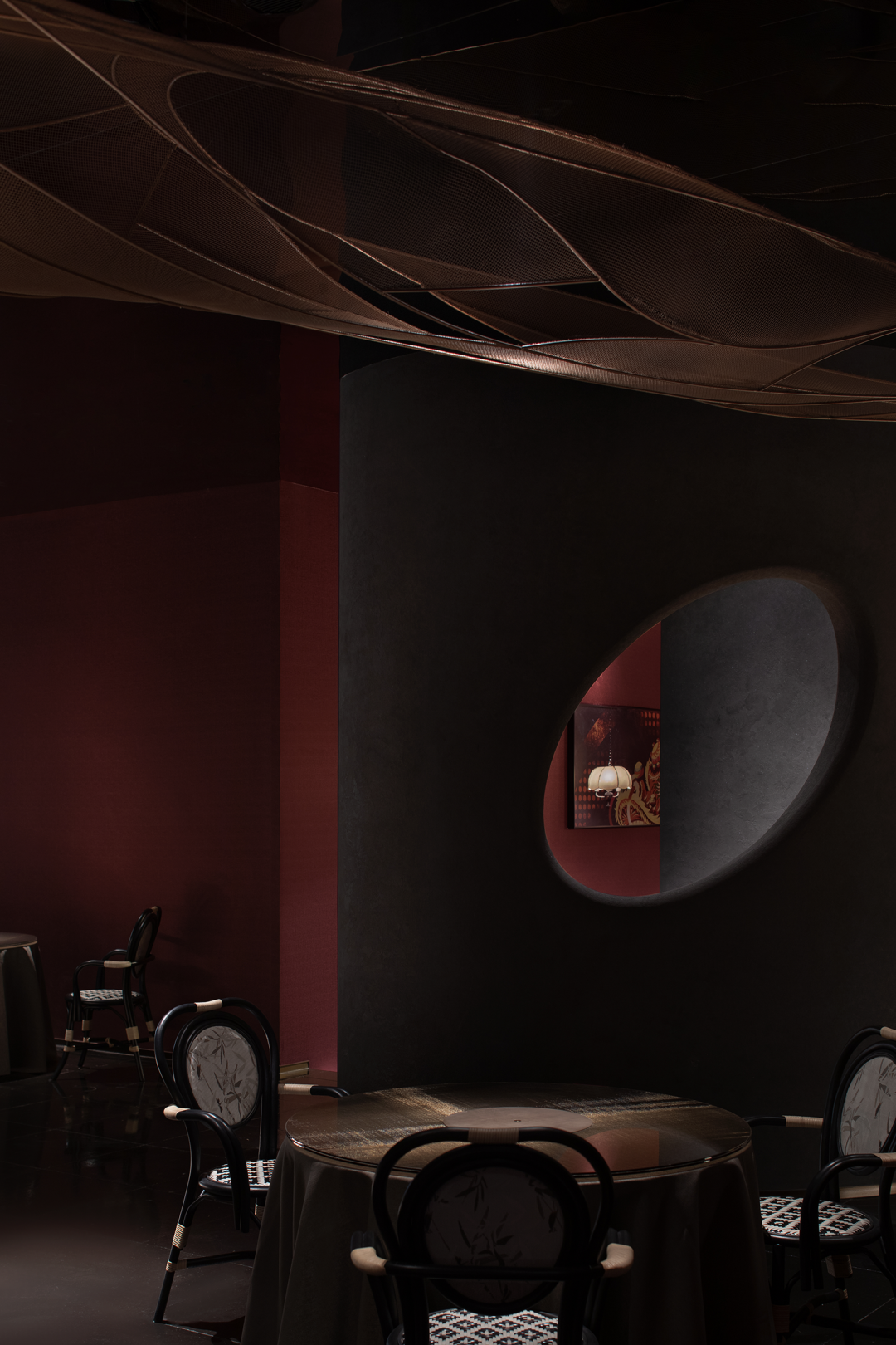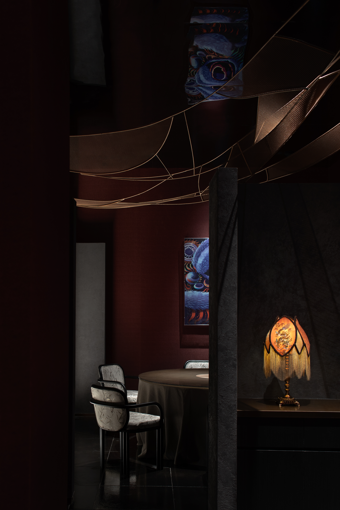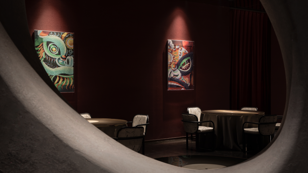 The elements of lion dance and dragon dance of Lingnan culture are extracted as wall installations, and the intangible cultural heritage impression is used as the carrier. The long-lasting dishes contain multiple flavors given by the long river of time. In terms of deep tribute to culture, the space is by no means a simple inheritance, innovation And reorganization is for stronger visual expression and multiple semantic expressions, and to give new vitality to the space.
