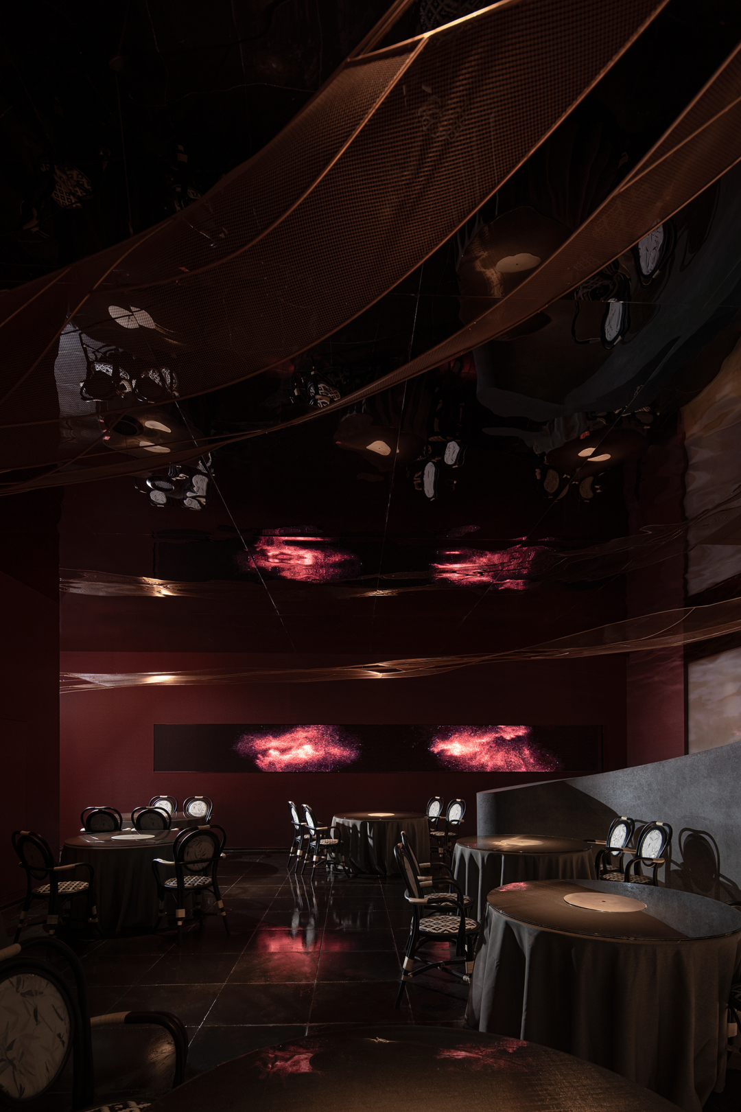贯穿于整个就餐区域的装置灵感源于岭南舞龙,“想象力”与“非遗”融合,表达本土文化最动人的魅力所在。2024恰逢龙年之际,从具象舞龙到抽象意识,从静态观守到腾云而跃,将自由灵感之变,以当代演绎方式承载到空间之中。