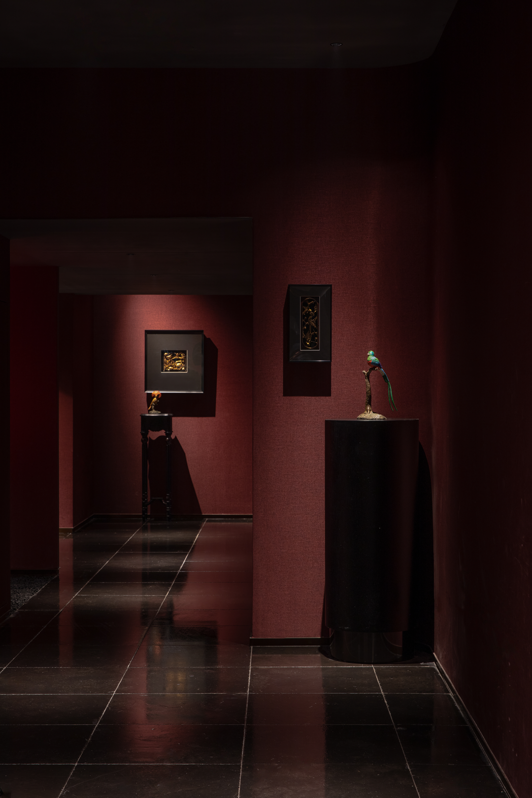 长幅的历史木雕铺展于此,宛若凝练沉淀的语言,其轮廓和纹理伴随光照,凸显传统风韵精髓,串联起行进动线中的视觉重点。