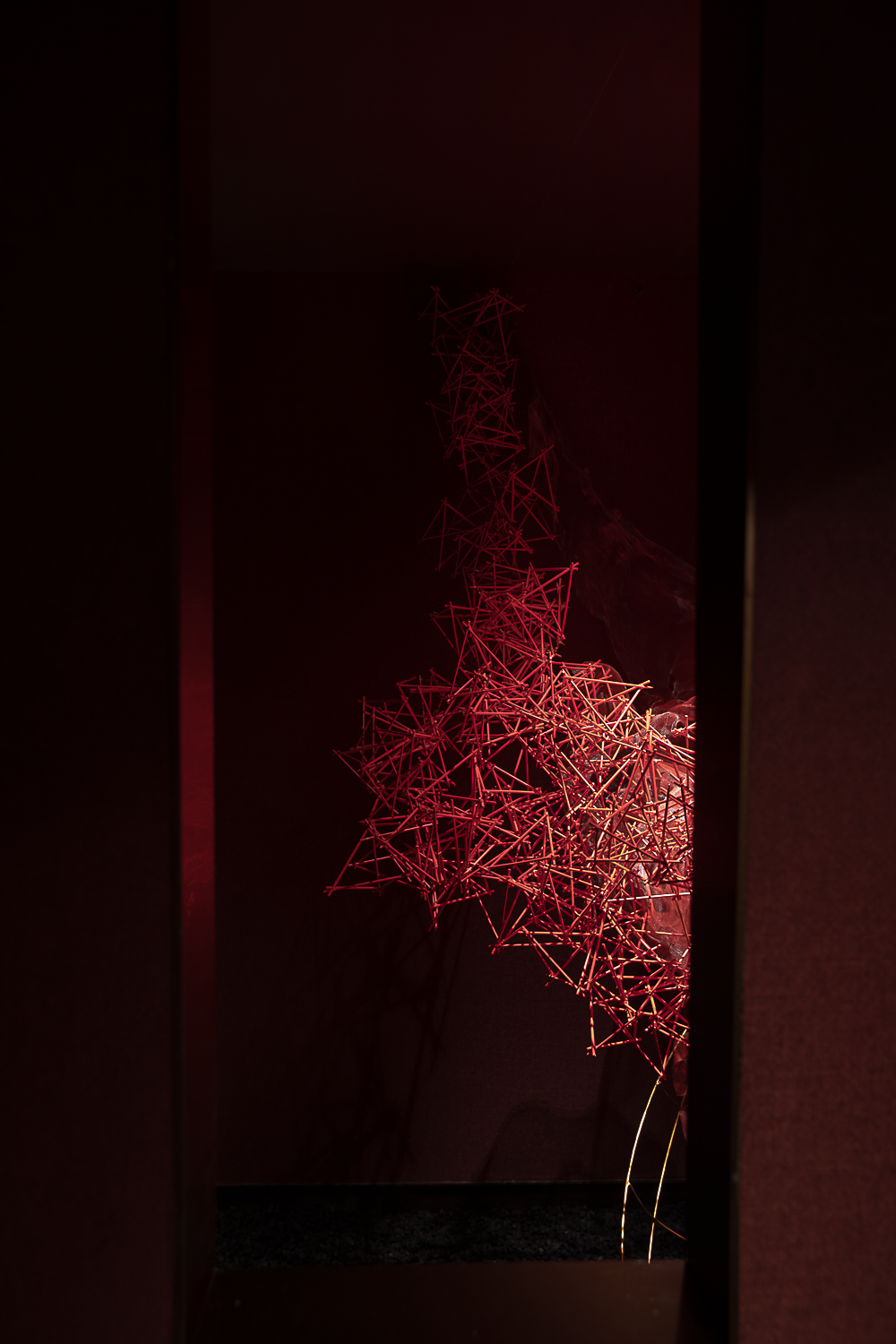 采用曲径通幽的划分,轻盈的装置和色彩碰撞融合于空间,不同光泽感的肌理表面完成多个视觉层次。形成面与线的结合,整体形态有机而富律动感。