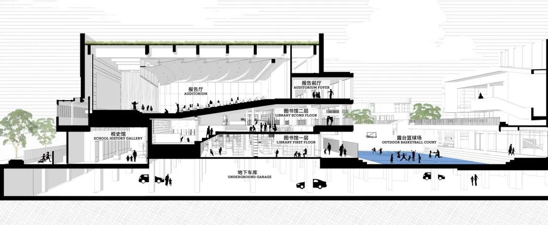 设计不仅追求教育价值的完善,更着眼于学校可能发挥的社会作用。杭州的城北片区文化设施相对稀少,建筑师希望学校在未来运行中,有机会于特定时段向城市开放,与社区形成互动,补足社区文化活动的不足。