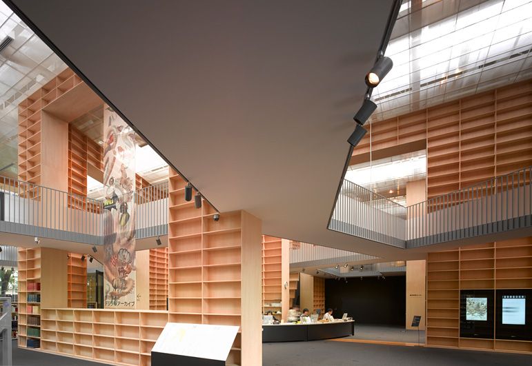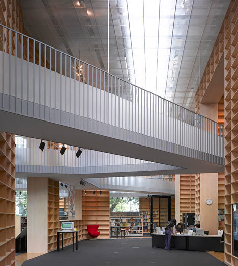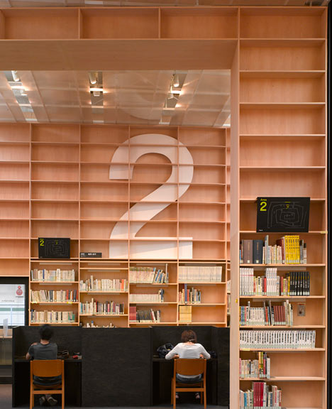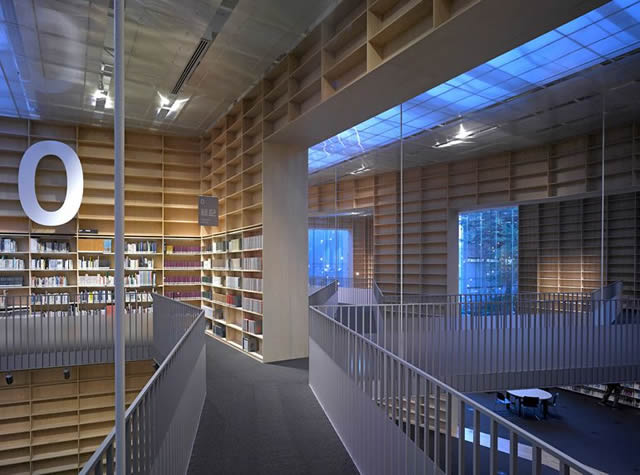 两层的武藏野美术大学(Musashino Art University)图书馆大部分墙体由整体木