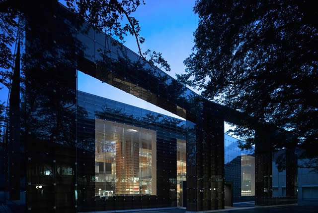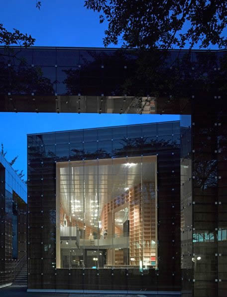 图书馆有着木制书架一样的外观,书架外部覆盖着平板玻璃表皮层。