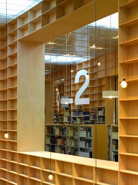 交通路线是循环的,通过书架墙体上开的洞环绕在书架之间。