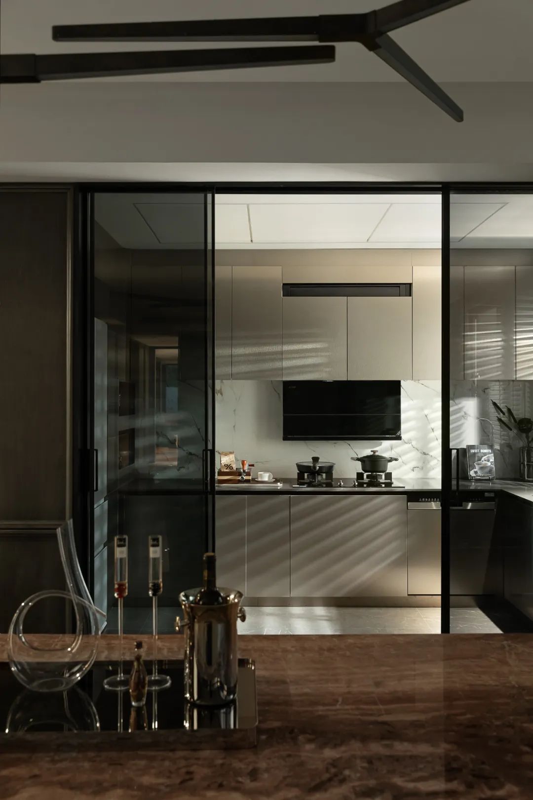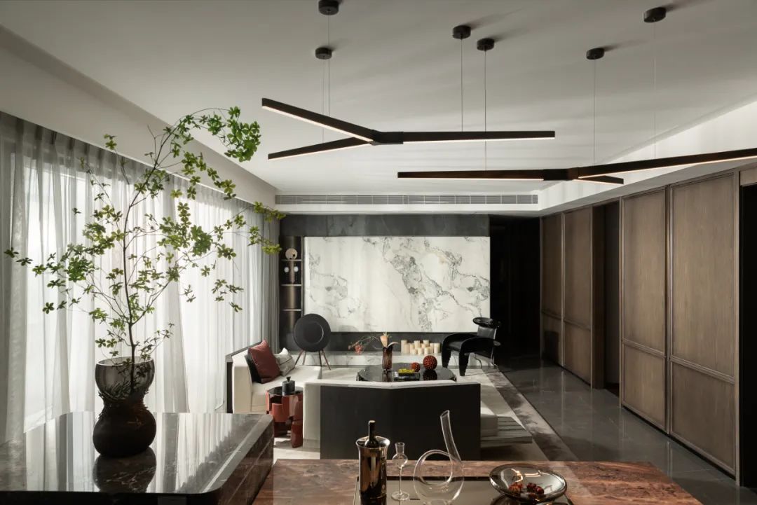 Suddenly orderly, the layout of a degree of space around a warm home charm, for the fast-paced life into the pulse of warmth. Skillful design techniques, marble, metal, leather, wood and other different materials to mix and mix skillfully, the overall color of the space with fashion elegant style.