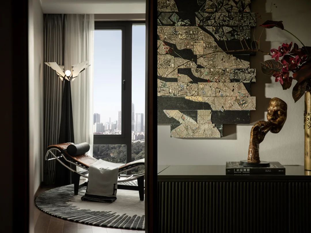纷繁热闹后,回归独处的安宁。暖调的光影氛围与随性的造型陈设,营造一个界别于外的泊心之所。一画、一毯、一椅、一烟、一盏,定格飘逸舒展的日常图景,闲适从容与雅艺追求在空间中畅意流动。
