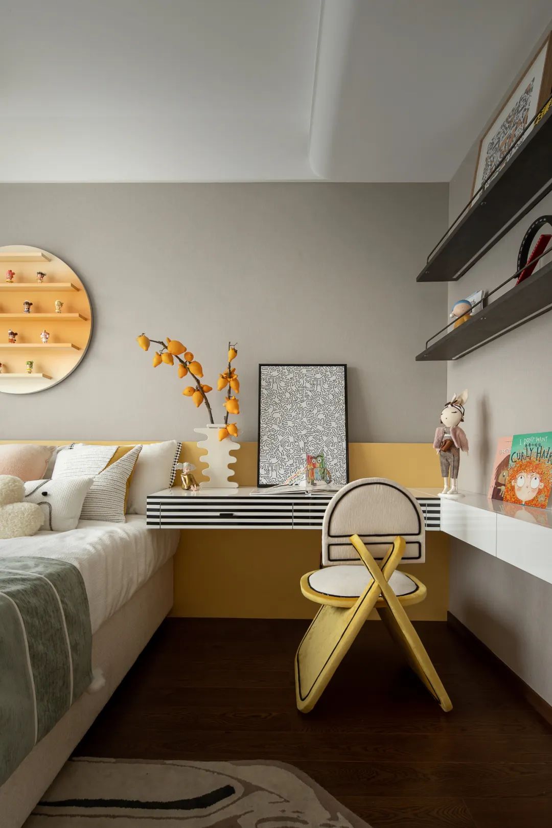 攫取当代儿童丰富的精神世界和自由的表达,构建梦幻多彩的儿童乐园。通过动漫元素自由组合,营造出时尚、潮流的欢乐王国,见证珍贵的成长瞬间。空间灵动活泼、活力十足,色调朝气蓬勃。异彩童趣玩偶加个性创意装饰画,让想象力插上自由飞翔的翅膀。