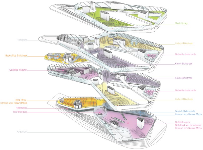 UN studio最终赢得了位于比利时Gent的未来城市图书馆和新媒体中心项目。该项目毗邻城市运河。'waalse krook' (荷兰语)是一个多层的设施,旨在通过其设计中对城市文脉的拓展从而强化区域的个性。