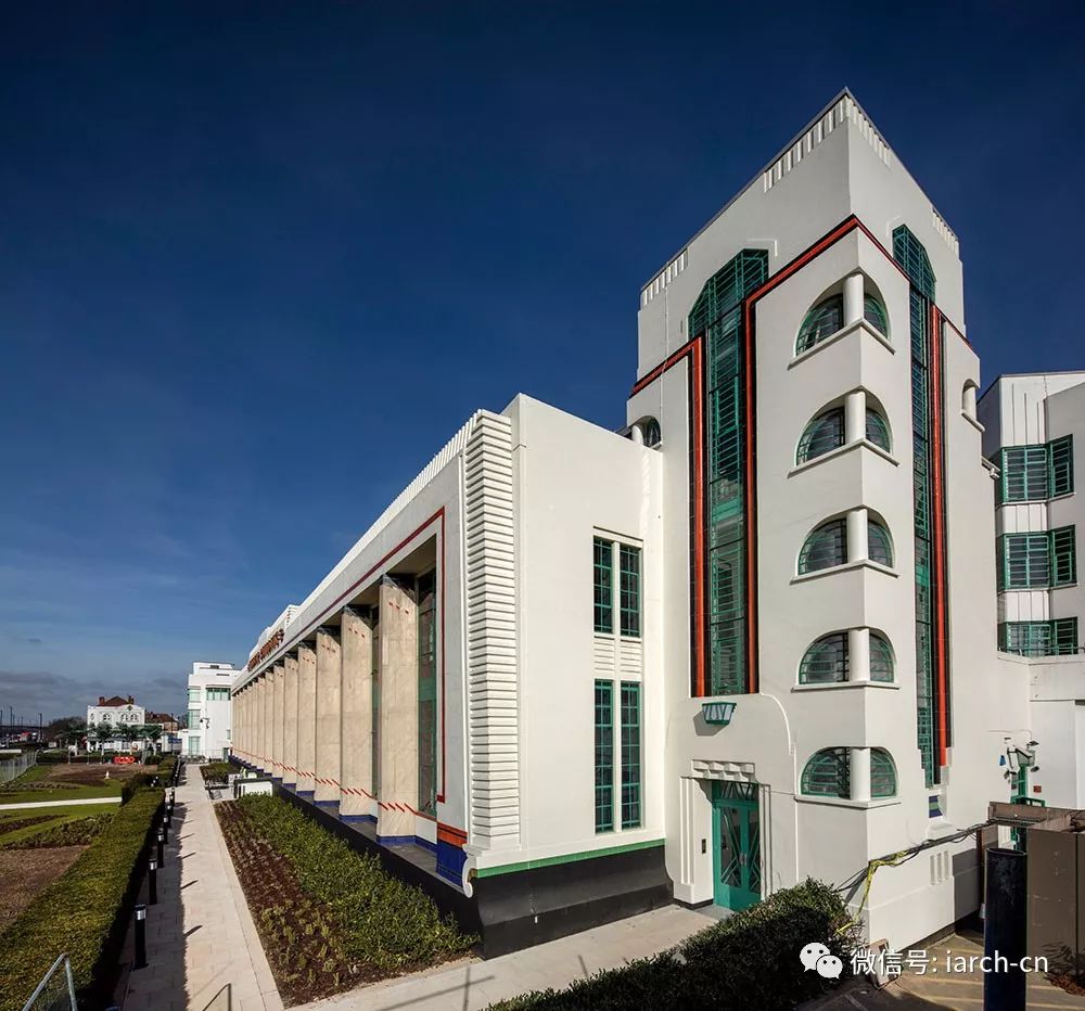 英国工作室Interrobang将伦敦西部的胡佛(Hoover)大楼改造成66间房间的公寓楼,保留了许多原有建筑的原创装饰艺术特色。