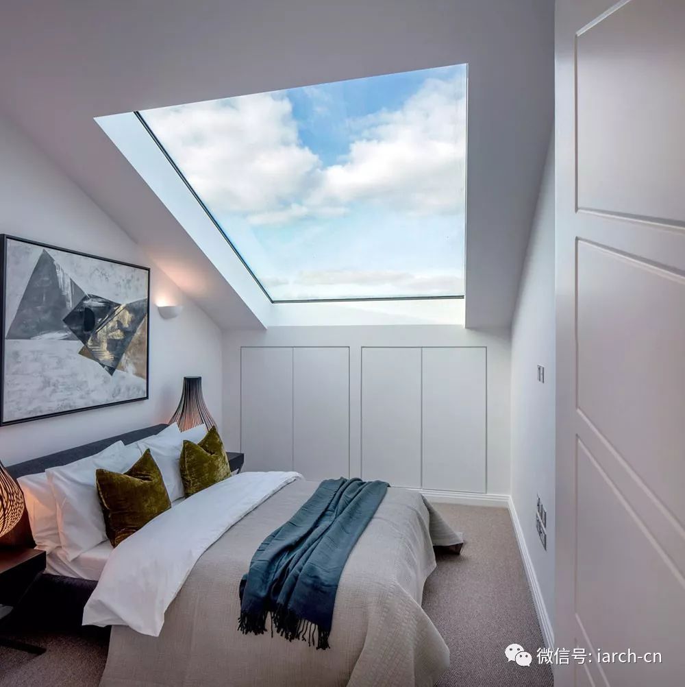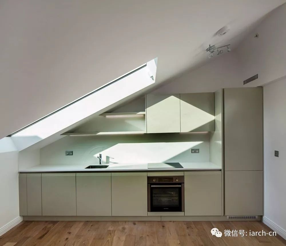 每间阁楼公寓都有自己的螺旋楼梯入口,并配有大型屋顶灯,室内充满了自然光线。