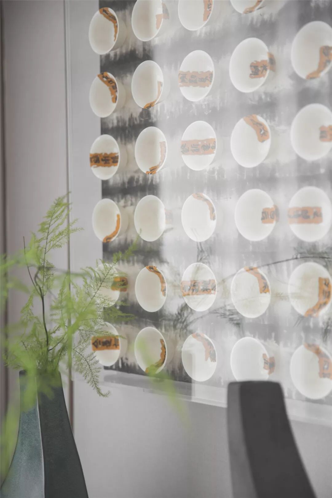 空间中并无明显可循的秩序与规律,隐约间体现着有机的平衡与对称。视线经过引导与暗示,通过藏与透、显与隐,在这富于层次趣味的空间里发现环环相扣的艺术形式,感受在变奏空间中流动着不变的气韵。