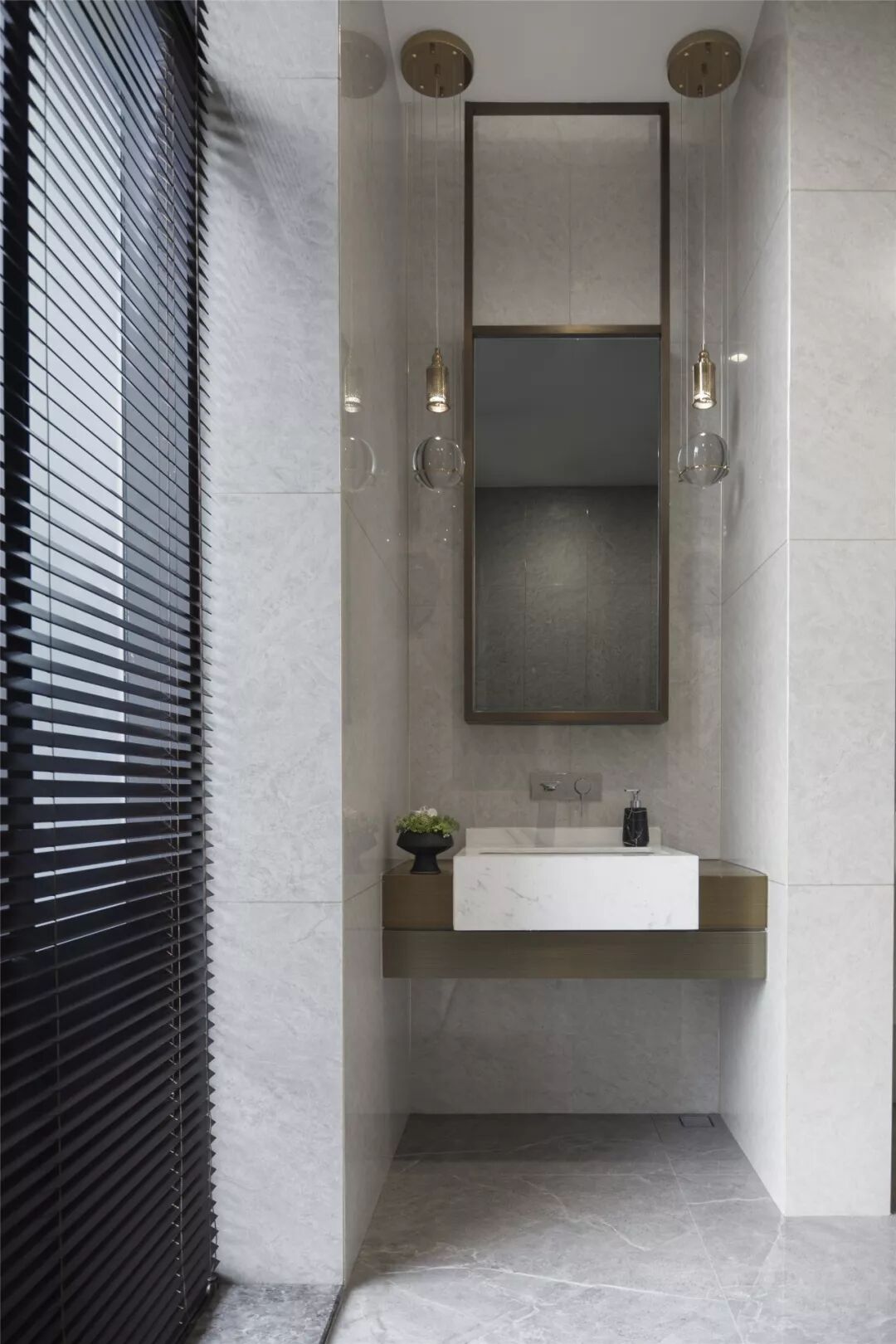 木饰面、石材、铜...这些是表达空间的载体,多重层次附着其上,流动的空气与光的波长渲染出风景,可观可游。几何的点与线,平衡的组合关系,形态富于张力又与整体平静契合。