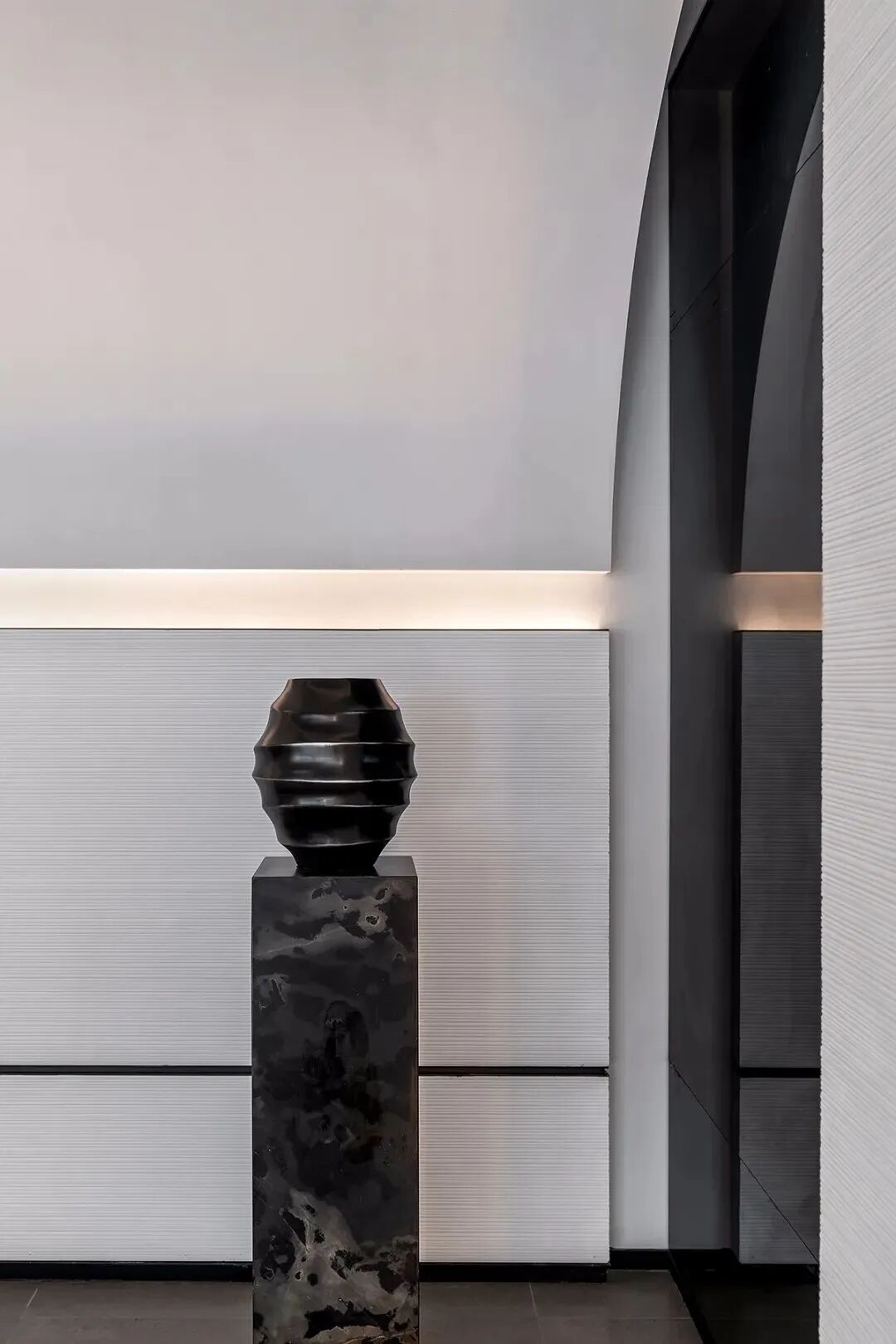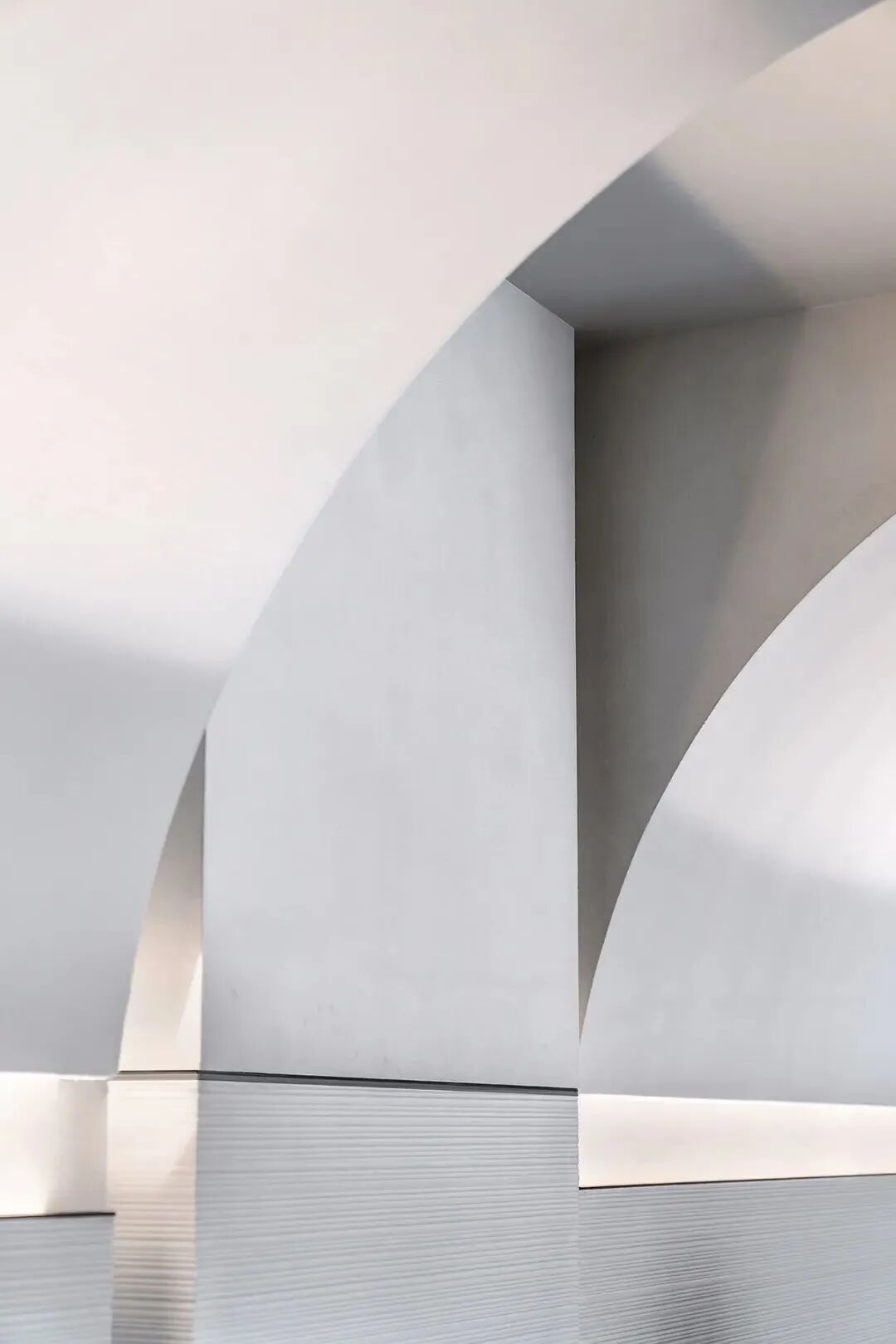 ▼泳池过道,月弧、光线的组合,既丰富又和谐