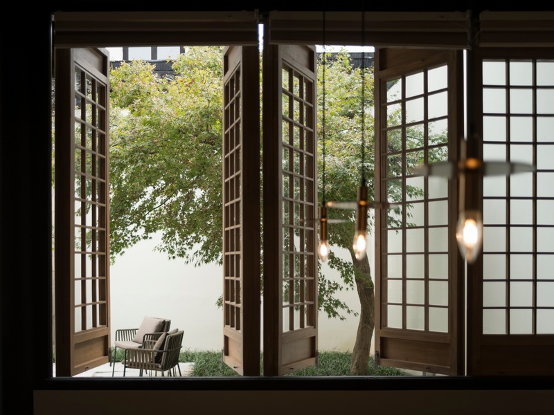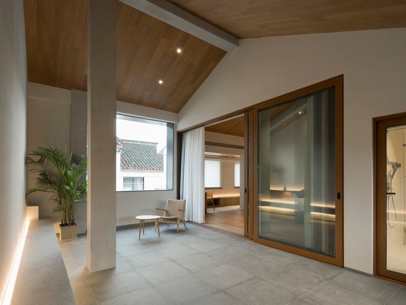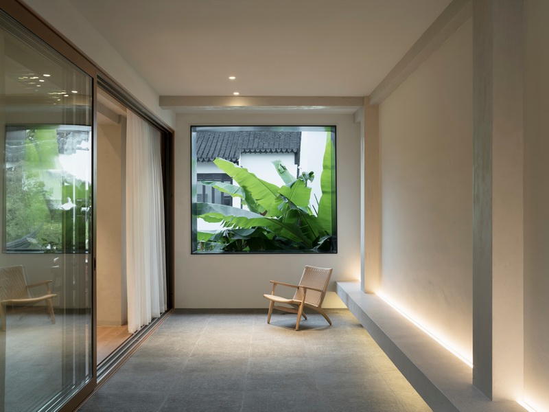 庭院是苏州古宅中最美的空间,庭院成为了另⼀个设计重点。⽼宅院⾥,每个古建筑都有⼀个独⽴的庭院,在设计中把原本格局中没有庭院的房间,也特意留出⼀部分空间作为庭院使⽤。住宅不再是封闭的,室内与室外相通,庭院与庭院相连,延续了苏州园林的情趣,空间随着⼈的⾏⾛变化流动,⼈的感官体验是动态的。